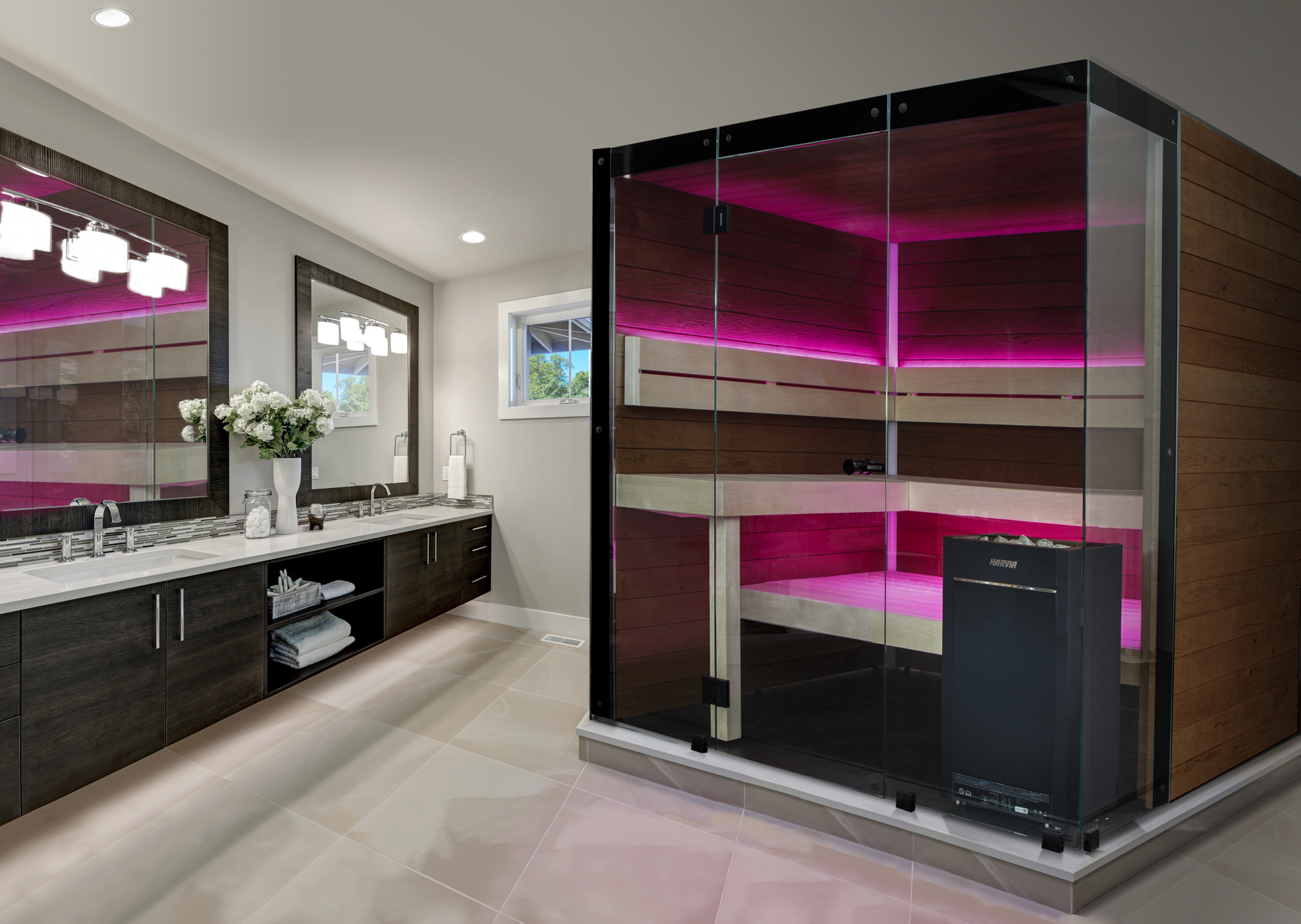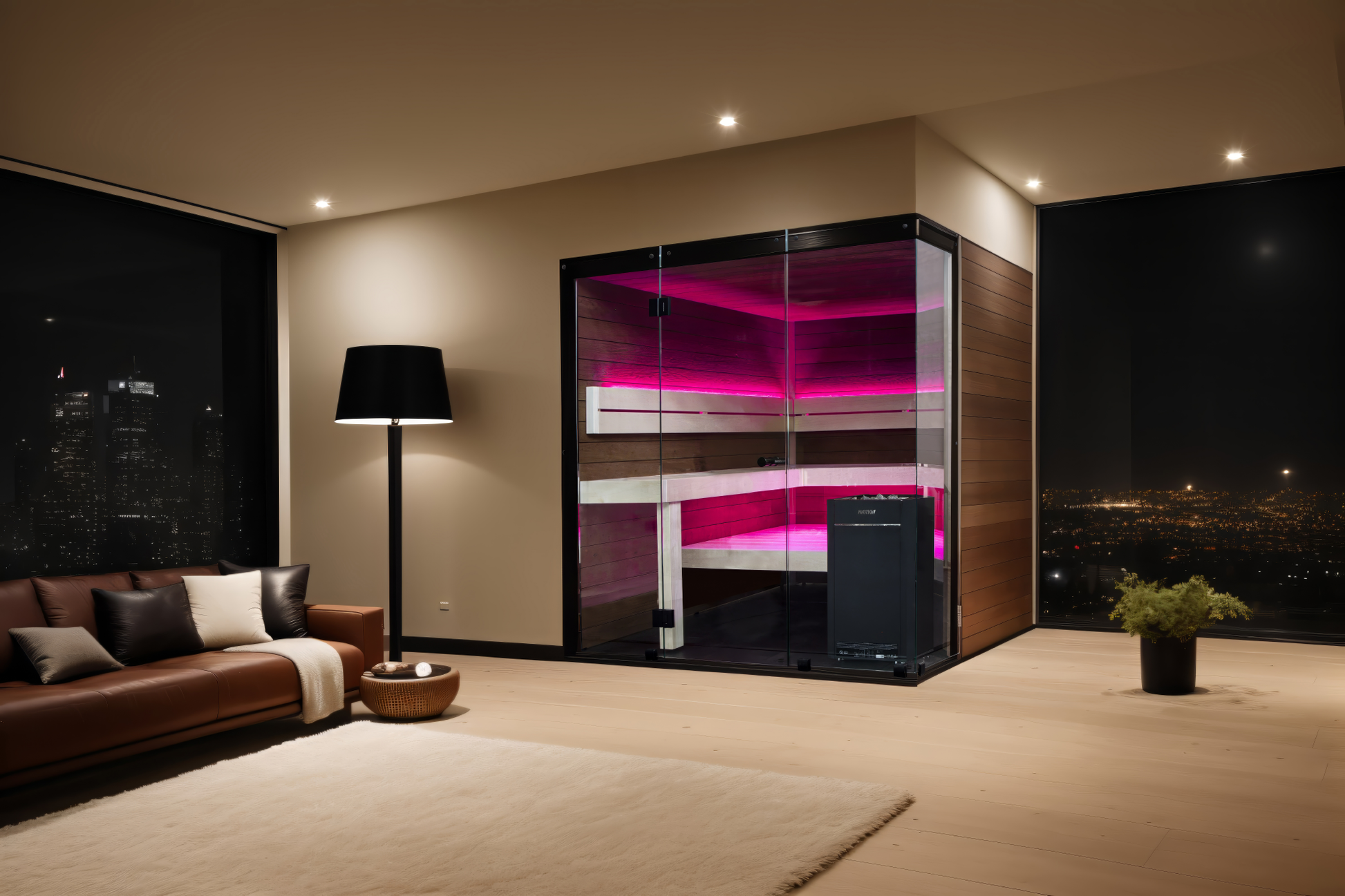 Inspired by Scandinavian design, the Block offers the perfect combination of minimalism and nature. The silk-printed safety glass and glass corners enhance the sense of space and light within the sauna. Add to the relaxation and enjoyment of your sauna experience by customizing its ambiance with a range of colors and lighting effects with remote-controlled LED lights. The innovative design of this sauna and efficient insulation methods allow for fast heat-up times and a stable temperature throughout your sauna session. The modern design and functionality of the Block creates the ideal, inviting sauna environment.