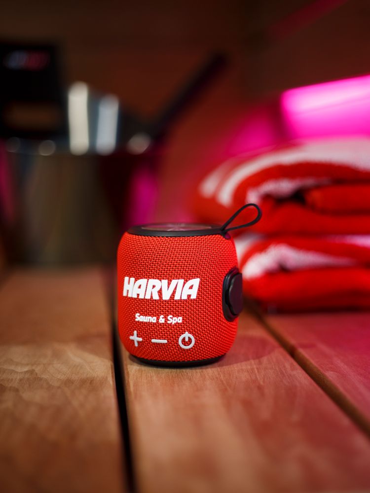 With Harvia's water and heat-resistant Bluetooth speaker, you can easily bring music to your sauna or wet areas. You can stream music wirelessly from your phone, tablet, laptop, or any Bluetooth device. The speaker is water and heat resistant up to 65 degrees (150 Fahrenheit). You can pair two speakers and play music in stereo.