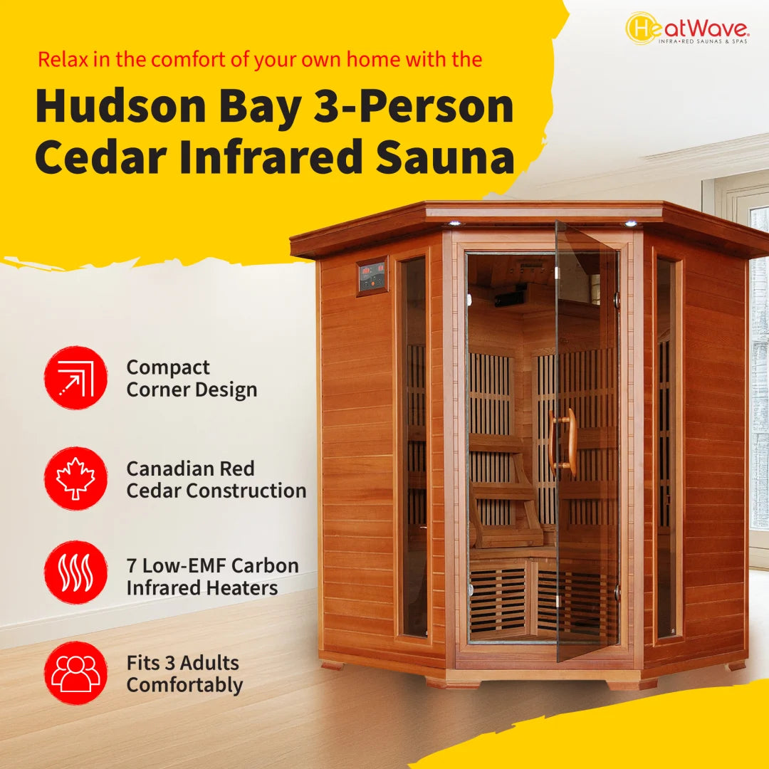 Hudson Bay 3-Person Cedar Corner Infrared Sauna with 7 Carbon Heaters