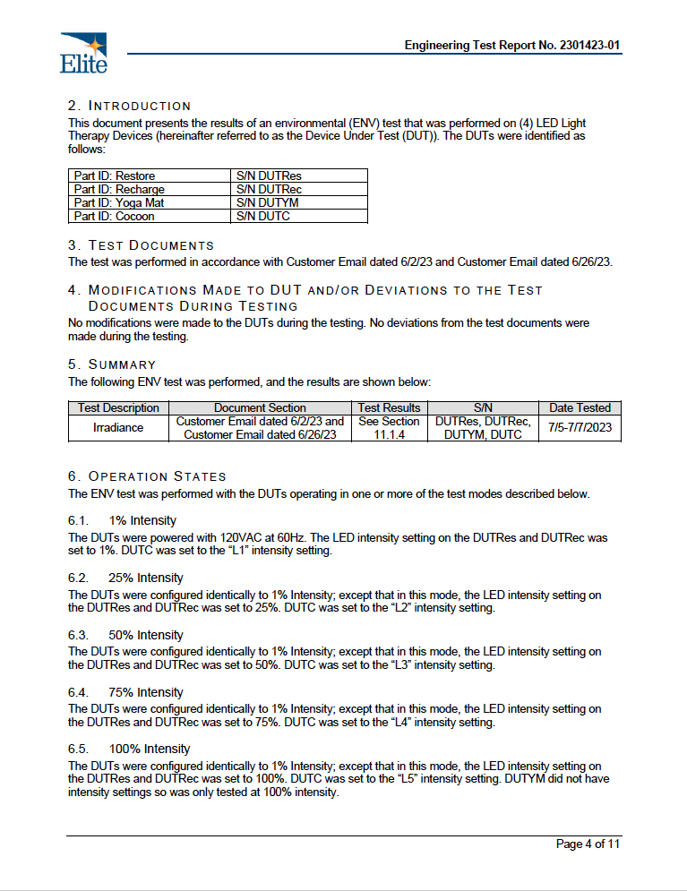 Leading the red light therapy space in safety, BioLight panels incorporate the lowest light flicker on the market and the lowest EMF emissions possible.