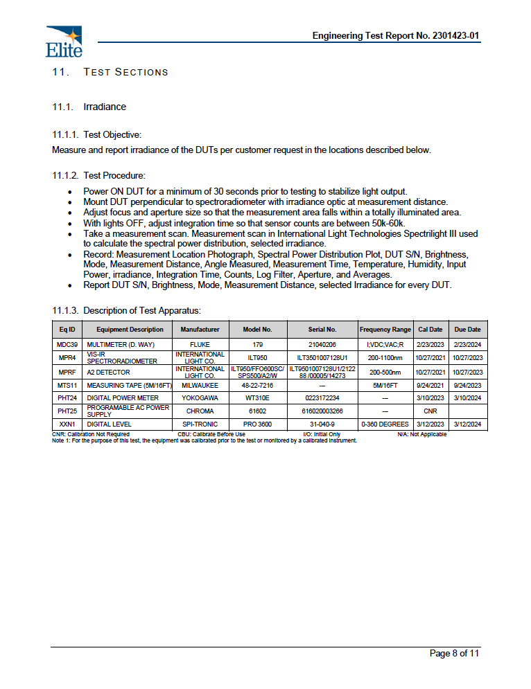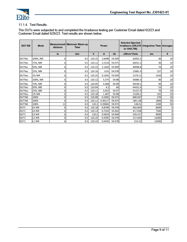 Light Irradiance (@6"):