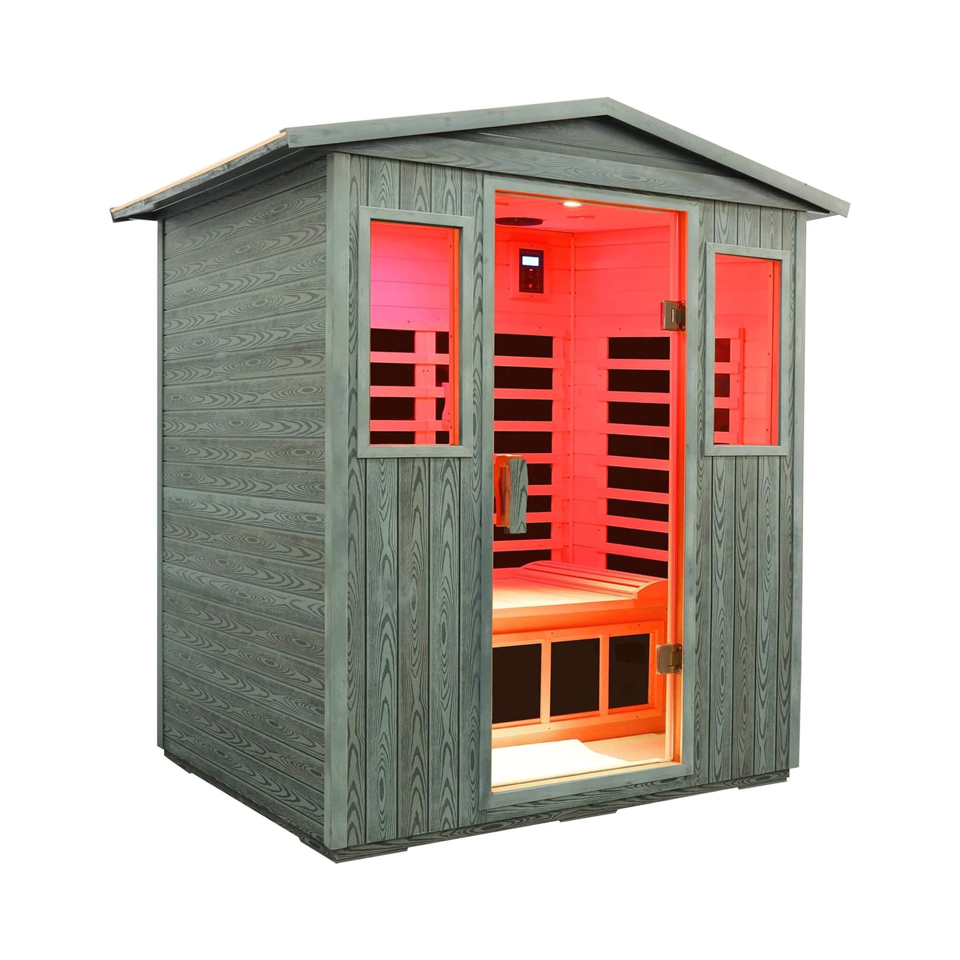 Bring the ultimate relaxation experience to your own backyard with the Thermora 3-Person Infrared Sauna Room! Crafted from a revolutionary carbonized wood-plastic composite, this sauna delivers a gorgeous natural texture while standing strong against warping, cracking, mold, and insects. Its smart hillside roof design isn’t just for looks—it provides superior drainage for rain and snow, ensuring your outdoor oasis remains pristine in any weather. Get ready to transform your garden or lawn into a personal wellness retreat!